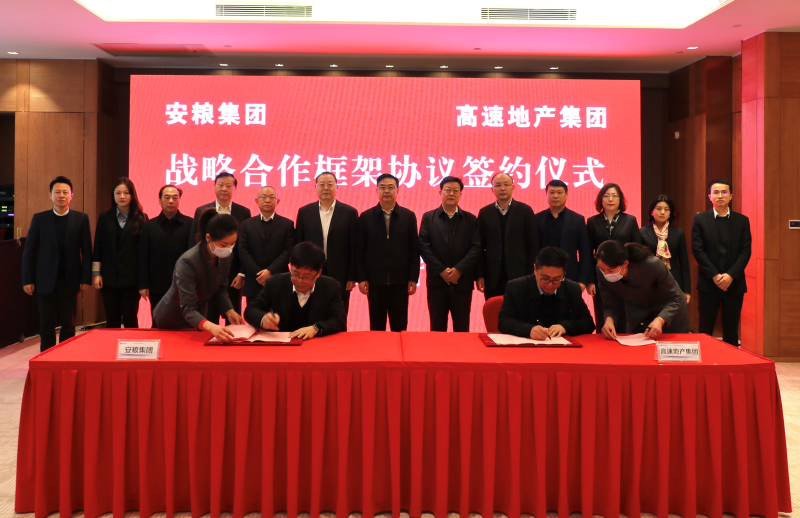 高速地產(chǎn)集團(tuán)董事長(zhǎng)陶文勝、安糧集團(tuán)董事長(zhǎng)曹訓(xùn)立分別在簽約儀式上致辭。高速地產(chǎn)集團(tuán)總經(jīng)理黃朝暉、安糧集團(tuán)總裁方宗友代表雙方簽署協(xié)議。
