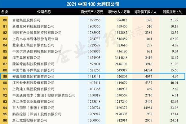 2021中國企業500強揭榜 海螺集團名列第90位