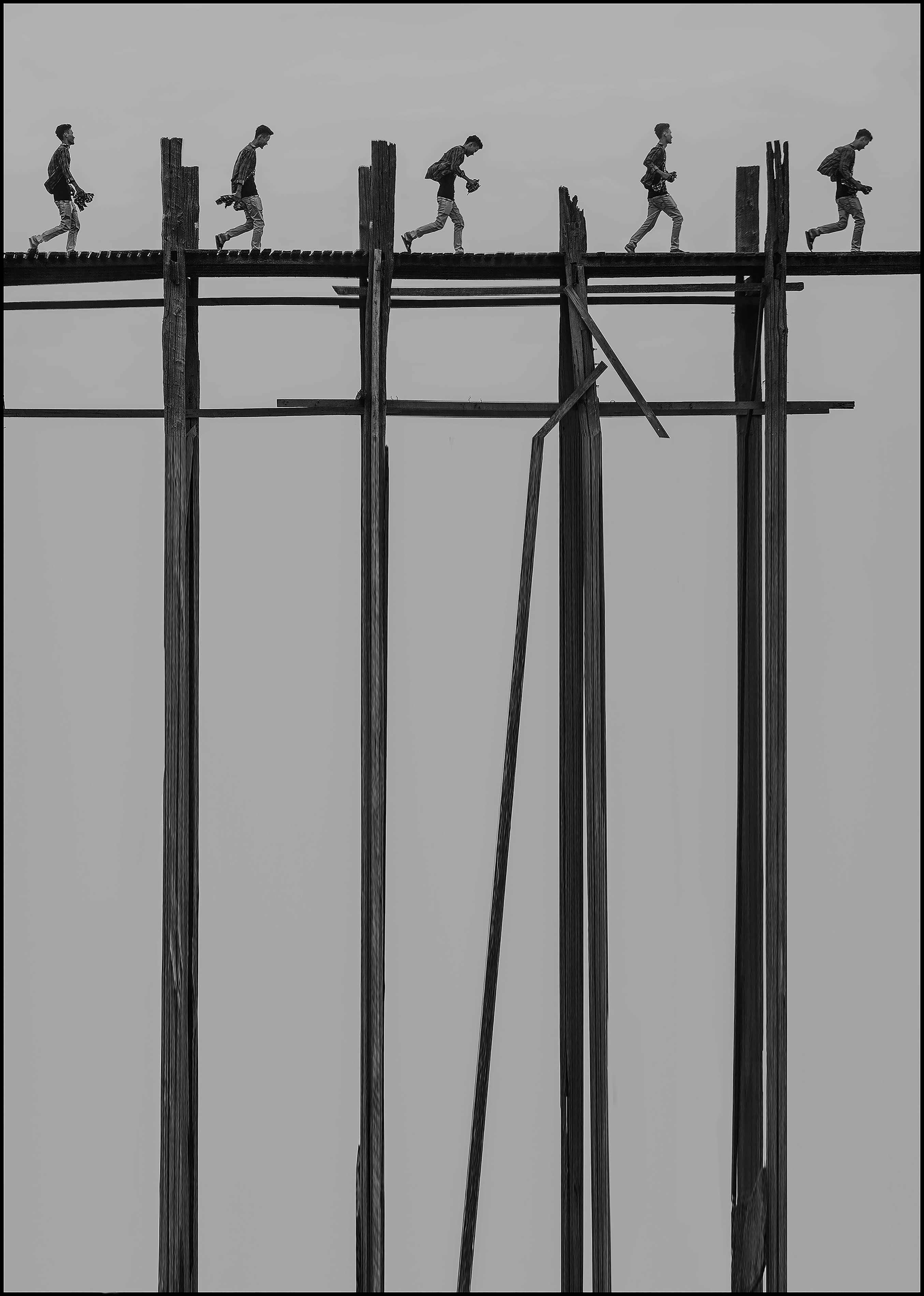 《空中少年》-技術(shù)公司-史亞利,2019年6月,攝于緬甸烏本橋。橋上自在行走的少年和水中長(zhǎng)長(zhǎng)的倒影,